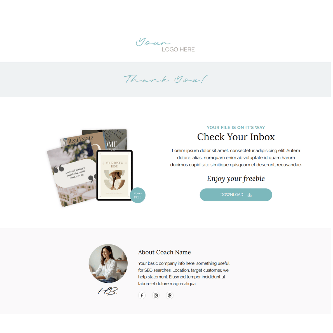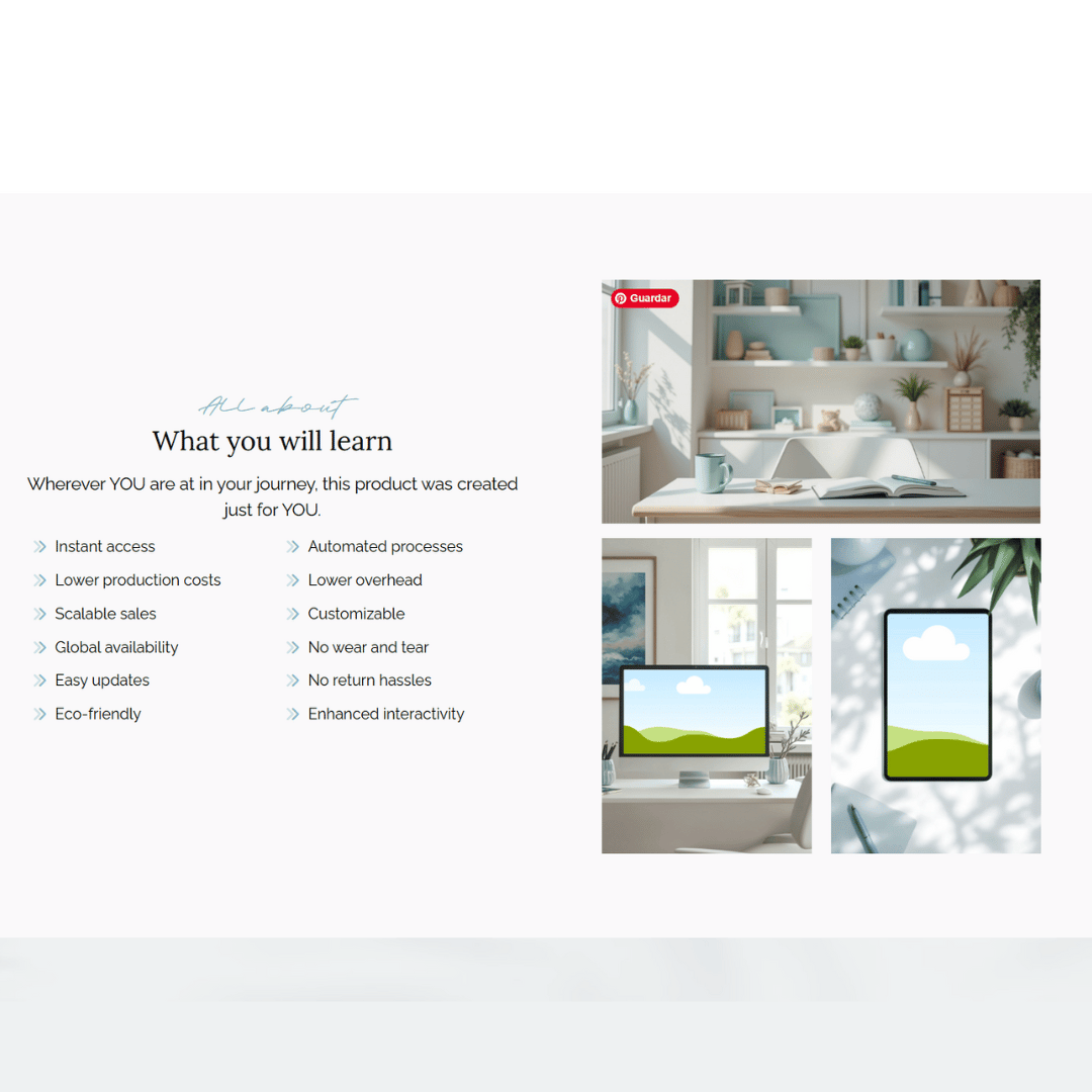 Una plantilla minimalista, moderna y totalmente editable para atraer suscriptores sin complicaciones técnicas. Diseñada para coaches, creadores y vendedores digitales que quieren ofrecer ebooks, guías o minicursos sin depender de diseñadores ni herramientas complejas.